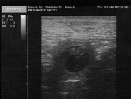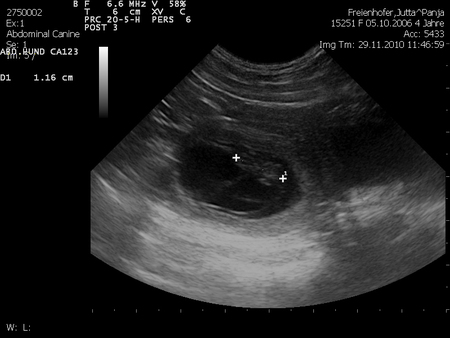Spotty war heute zum Ultraschall; sie erwartet Ende März Welpen.